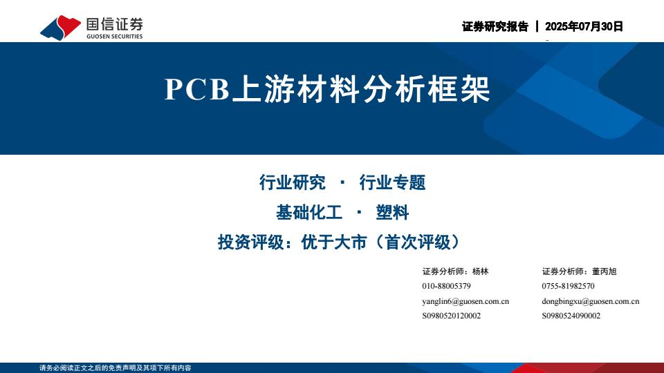 【20131E】【国信证券】基础化工行业专题:PCB上游材料分析框架 1天前 8月 1 预览结束,本文件为PDF文档,一共36页,请购买后,下载查看 资源下载下载价格59 H币VIP免费升级VIP立即购买下载或充值问题请将订单号发送到:2907878669@qq.com ,我们会在24小时内为您处理 科技电子