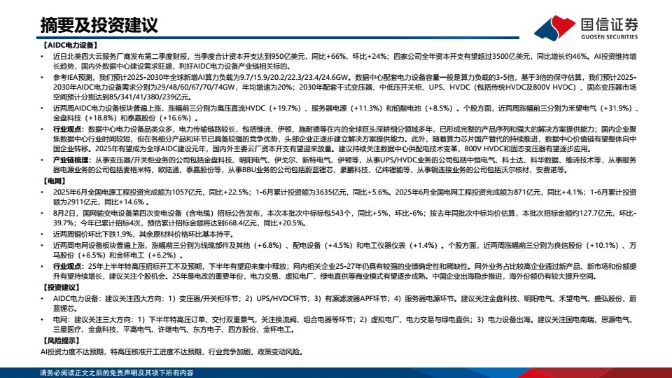 【20146E】【国信证券】AIDC电力设备电网产业链周度跟踪(8月第2周) 1天前 8月 1 预览结束,本文件为PDF文档,一共22页,请购买后,下载查看 资源下载下载价格59 H币VIP免费升级VIP立即购买下载或充值问题请将订单号发送到:2907878669@qq.com ,我们会在24小时内为您处理 科技电子