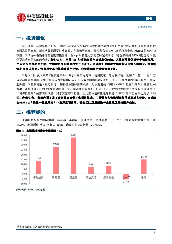 【19844E】【中信建投】通信行业:AI算力投资方兴未艾,卫星互联网建设明显提速 1天前 8月 2 预览结束,本文件为PDF文档,一共11页,请购买后,下载查看 资源下载下载价格59 H币VIP免费升级VIP立即购买下载或充值问题请将订单号发送到:2907878669@qq.com ,我们会在24小时内为您处理 科技电子
