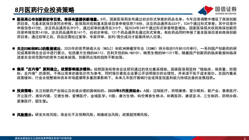【20123E】【国信证券】医药生物行业2025年8月投资策略:关注创新药产业链以及估值合理的器械标的 22小时前 8月 1 预览结束,本文件为PDF文档,一共38页,请购买后,下载查看 资源下载下载价格59 H币VIP免费升级VIP立即购买下载或充值问题请将订单号发送到:2907878669@qq.com ,我们会在24小时内为您处理 医疗保健