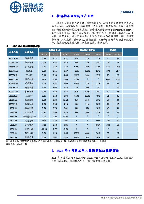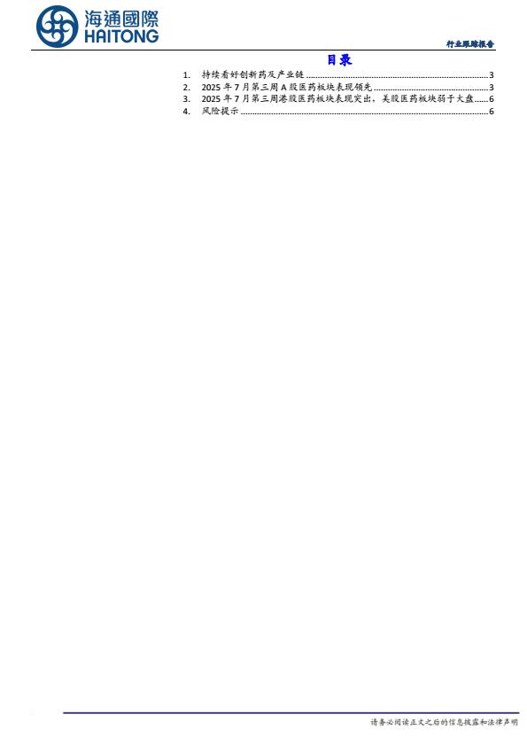 【20656E】【海通国际】医药行业2025年7月第三周周报:高景气延续,持续关注创新药及产业链 1天前 8月 3 预览结束,本文件为PDF文档,一共14页,请购买后,下载查看 资源下载下载价格59 H币VIP免费升级VIP立即购买下载或充值问题请将订单号发送到:2907878669@qq.com ,我们会在24小时内为您处理 医疗保健