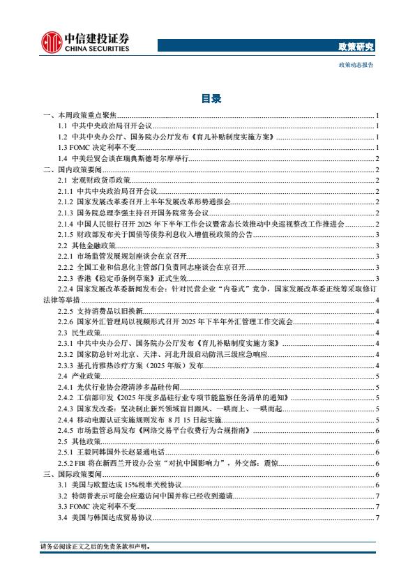【19906E】【中信建投】【政策研究】中共中央政治局召开会议,《育儿补贴制度实施方案》出台;美联储议息会议再度按兵不动(2025年7月28日8月3日) 22小时前 8月 5 预览结束,本文件为PDF文档,一共15页,请购买后,下载查看 资源下载下载价格59 H币VIP免费升级VIP立即购买下载或充值问题请将订单号发送到:2907878669@qq.com ,我们会在24小时内为您处理 金融分析