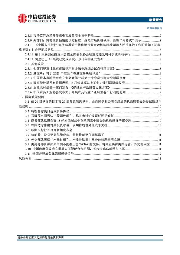 【19908E】【中信建投】【政策研究】国务院国资委部署“反内卷式竞争”,加强重组整合;特朗普关税谈判取得一定进展(2025年7月21日7月27日) 22小时前 8月 5 预览结束,本文件为PDF文档,一共18页,请购买后,下载查看 资源下载下载价格59 H币VIP免费升级VIP立即购买下载或充值问题请将订单号发送到:2907878669@qq.com ,我们会在24小时内为您处理 金融分析