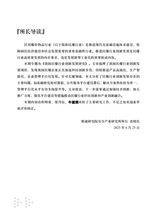 【20685E】【赛迪智库】2025我国民爆行业创新发展研究报告 1天前 8月 2 预览结束,本文件为PDF文档,一共13页,请购买后,下载查看 资源下载下载价格59 H币VIP免费升级VIP立即购买下载或充值问题请将订单号发送到:2907878669@qq.com ,我们会在24小时内为您处理 军工