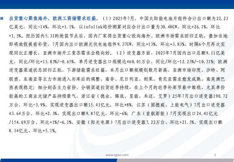 【21116E】【长城证券】电力设备及新能源行业:光伏电池组件逆变器出口月报(25年7月) 1天前 9月 1 预览结束,本文件为PDF文档,一共17页,请购买后,下载查看 资源下载下载价格59 H币VIP免费升级VIP立即购买下载或充值问题请将订单号发送到:2907878669@qq.com ,我们会在24小时内为您处理 能源化工
