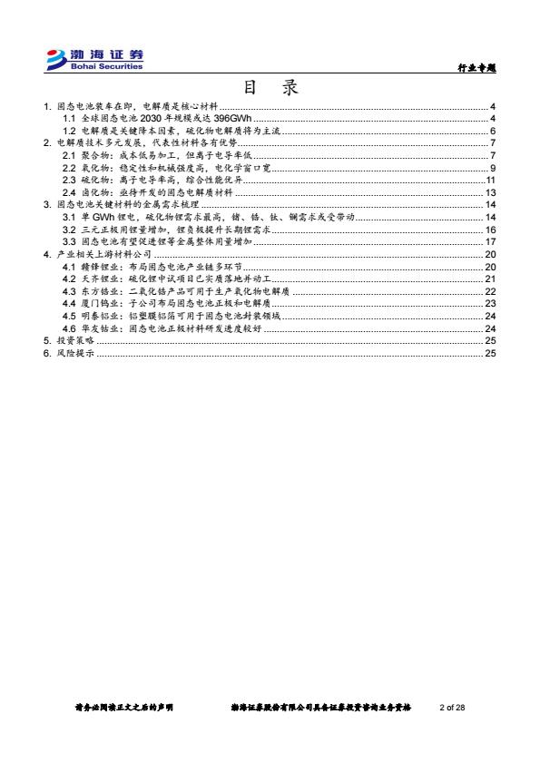 【21125E】【渤海证券】固态电池材料行业专题报告:固态电池引领产业变革,核心金属迎来需求新机 1天前 9月 1 预览结束,本文件为PDF文档,一共28页,请购买后,下载查看 资源下载下载价格59 H币VIP免费升级VIP立即购买下载或充值问题请将订单号发送到:2907878669@qq.com ,我们会在24小时内为您处理 能源化工