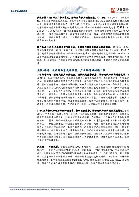 【22145E】电力设备与新能源行业周报(第三十四周):周观点光伏反内卷政策成果显著产业链价格持续上涨 3天前 9月 3 预览结束,本文件为PDF文档,一共18页,请购买后,下载查看 资源下载下载价格59 H币VIP免费升级VIP立即购买下载或充值问题请将订单号发送到:2907878669@qq.com ,我们会在24小时内为您处理 能源化工