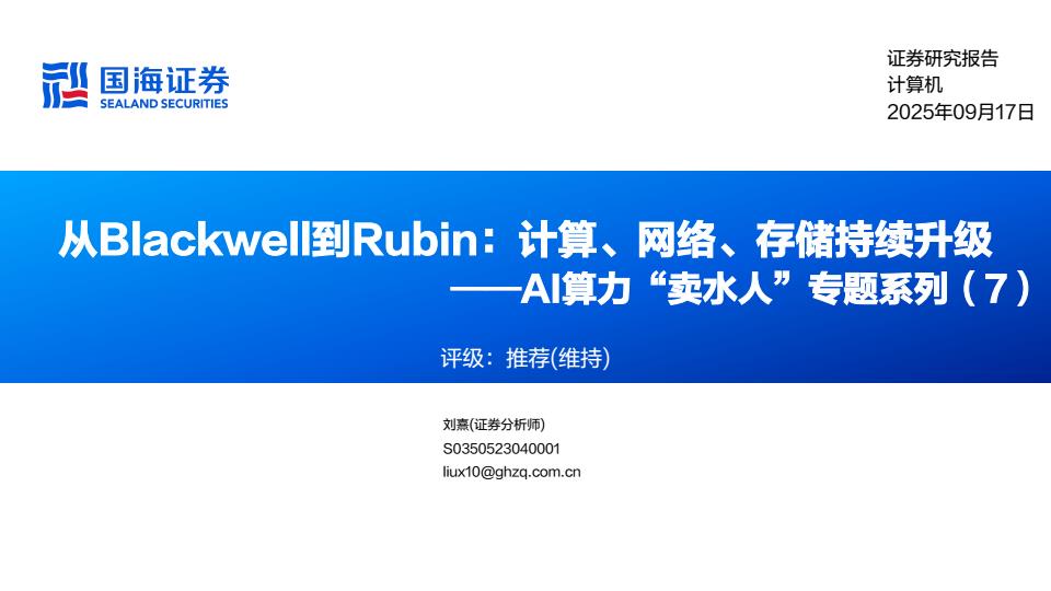 【22421E】计算机行业AI算力“卖水人”专题系列(7):从Blackwell到Rubin计算、网络、存储持续升级 2天前 9月 2 预览结束,本文件为PDF文档,一共54页,请购买后,下载查看 资源下载下载价格59 H币VIP免费升级VIP立即购买下载或充值问题请将订单号发送到:2907878669@qq.com ,我们会在24小时内为您处理 科技电子