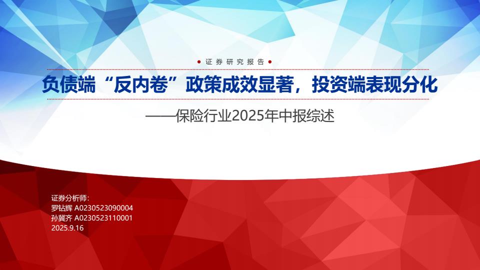 【22518E】【申万宏源】保险行业2025年中报综述:负债端“反内卷”政策成效显著,投资端表现分化 2天前 9月 2 预览结束,本文件为PDF文档,一共31页,请购买后,下载查看 资源下载下载价格59 H币VIP免费升级VIP立即购买下载或充值问题请将订单号发送到:2907878669@qq.com ,我们会在24小时内为您处理 金融分析