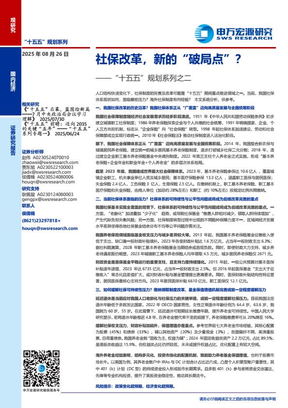 【22532E】【申万宏源】“十五五”规划系列之二:社保改革,新的“破局点” 2天前 9月 2 预览结束,本文件为PDF文档,一共21页,请购买后,下载查看 资源下载下载价格59 H币VIP免费升级VIP立即购买下载或充值问题请将订单号发送到:2907878669@qq.com ,我们会在24小时内为您处理 金融分析