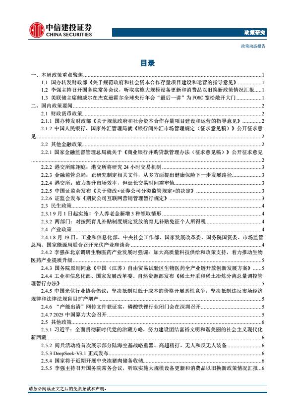 【21345E】【中信建投】【政策研究】财政部发布《关于规范政府和社会资本合作存量项目建设和运营的指导意见》;美联储主席鲍威尔讲话为最快9月降息铺路(2025年8月18日 2天前 9月 2 预览结束,本文件为PDF文档,一共15页,请购买后,下载查看 资源下载下载价格59 H币VIP免费升级VIP立即购买下载或充值问题请将订单号发送到:2907878669@qq.com ,我们会在24小时内为您处理 金融分析