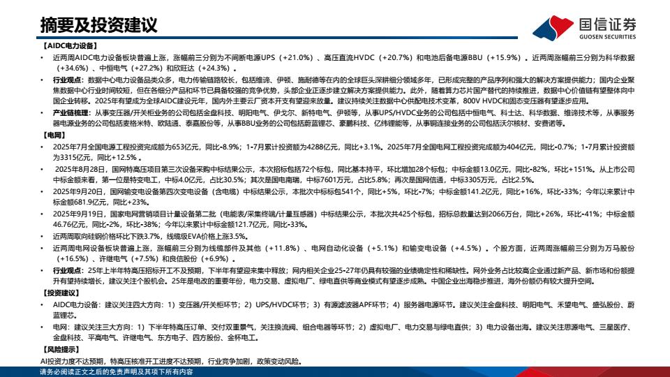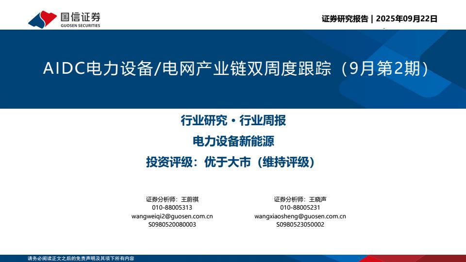 【21038E】【国信证券】电力设备新能源行业:AIDC电力设备/电网产业链双周度跟踪 2天前 9月 2 预览结束,本文件为PDF文档,一共22页,请购买后,下载查看 资源下载下载价格59 H币VIP免费升级VIP立即购买下载或充值问题请将订单号发送到:2907878669@qq.com ,我们会在24小时内为您处理 能源化工