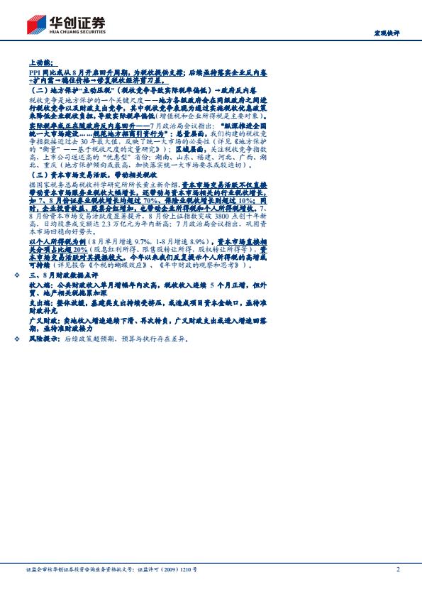 【21361E】【华创证券】【宏观快评】8月财政数据点评:税收高增的非经济因素 2天前 9月 3 预览结束,本文件为PDF文档,一共20页,请购买后,下载查看 资源下载下载价格59 H币VIP免费升级VIP立即购买下载或充值问题请将订单号发送到:2907878669@qq.com ,我们会在24小时内为您处理 金融分析