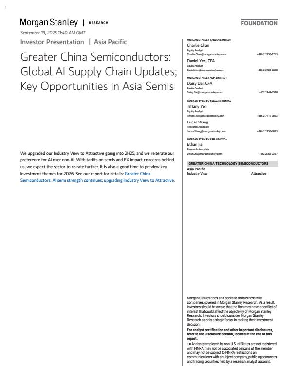 【22551E】大中华区半导体全球人工智能供应链更新;亚洲半导体的关键机遇 3天前 9月 3 预览结束,本文件为PDF文档,一共57页,请购买后,下载查看 资源下载下载价格59 H币VIP免费升级VIP立即购买下载或充值问题请将订单号发送到:2907878669@qq.com ,我们会在24小时内为您处理 科技电子