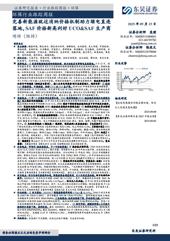 【21058E】【东吴证券】环保行业跟踪周报:完善新能源就近消纳价格机制助力绿电直连落地,SAF价格新高利好UCO&SAF生产商 2天前 9月 2 预览结束,本文件为PDF文档,一共25页,请购买后,下载查看 资源下载下载价格59 H币VIP免费升级VIP立即购买下载或充值问题请将订单号发送到:2907878669@qq.com ,我们会在24小时内为您处理 能源化工