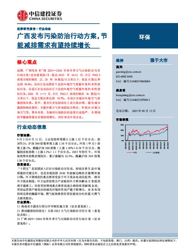 【21278E】【中信建投】环保行业动态:广西发布污染防治行动方案,节能减排需求有望持续增长 14小时前 9月 1 预览结束,本文件为PDF文档,一共12页,请购买后,下载查看 资源下载下载价格59 H币VIP免费升级VIP立即购买下载或充值问题请将订单号发送到:2907878669@qq.com ,我们会在24小时内为您处理 能源化工