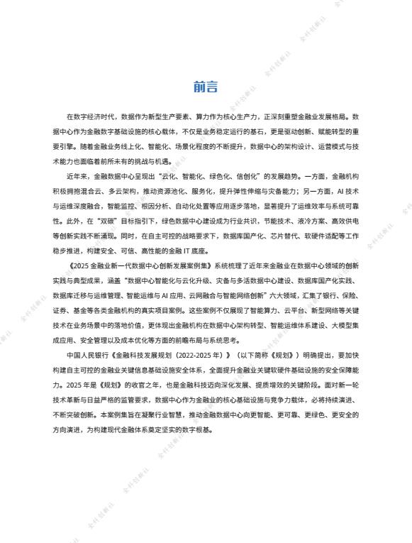 【22323E】【金科创新社】2025年金融业新一代数据中心创新发展案例集 2天前 9月 2 预览结束,本文件为PDF文档,一共142页,请购买后,下载查看 资源下载下载价格59 H币VIP免费升级VIP立即购买下载或充值问题请将订单号发送到:2907878669@qq.com ,我们会在24小时内为您处理 银行金融