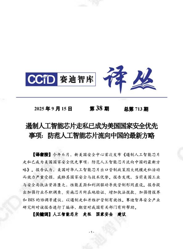 【22558E】2025年总第713期:遏制人工智能芯片走私已成为美国国家安全优先事项 21小时前 9月 1 预览结束,本文件为PDF文档,一共36页,请购买后,下载查看 资源下载下载价格59 H币VIP免费升级VIP立即购买下载或充值问题请将订单号发送到:2907878669@qq.com ,我们会在24小时内为您处理 科技电子