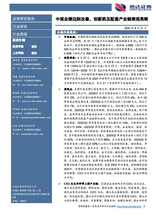 【21169E】【信达证券】医药生物行业周报:中报业绩边际改善,创新药及配套产业链表现亮眼 2天前 9月 2 预览结束,本文件为PDF文档,一共16页,请购买后,下载查看 资源下载下载价格59 H币VIP免费升级VIP立即购买下载或充值问题请将订单号发送到:2907878669@qq.com ,我们会在24小时内为您处理 医疗保健
