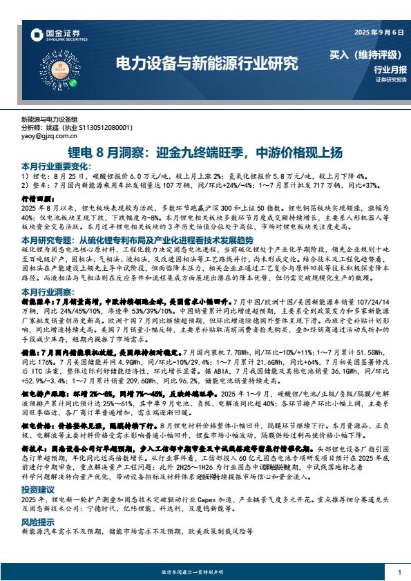 【21065E】【国金证券】电力设备与新能源行业研究:锂电8月洞察,迎金九终端旺季,中游价格现上扬 2天前 9月 2 预览结束,本文件为PDF文档,一共15页,请购买后,下载查看 资源下载下载价格59 H币VIP免费升级VIP立即购买下载或充值问题请将订单号发送到:2907878669@qq.com ,我们会在24小时内为您处理 能源化工
