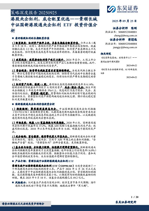 【21509E】【东吴证券】策略深度报告:景顺长城中证国新港股通央企红利ETF投资价值分析,港股央企红利,底仓配置优选 22小时前 9月 1 预览结束,本文件为PDF文档,一共20页,请购买后,下载查看 资源下载下载价格59 H币VIP免费升级VIP立即购买下载或充值问题请将订单号发送到:2907878669@qq.com ,我们会在24小时内为您处理 金融分析