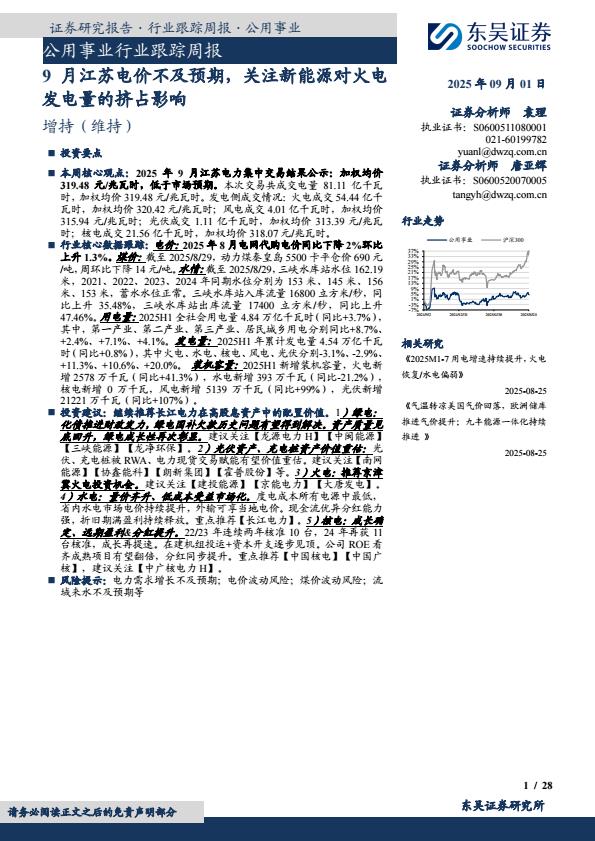 【21069E】【东吴证券】公用事业行业跟踪周报:9月江苏电价不及预期,关注新能源对火电发电量的挤占影响 21小时前 9月 1 预览结束,本文件为PDF文档,一共28页,请购买后,下载查看 资源下载下载价格59 H币VIP免费升级VIP立即购买下载或充值问题请将订单号发送到:2907878669@qq.com ,我们会在24小时内为您处理 能源化工