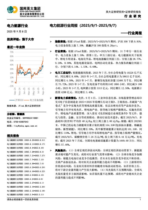 【21071E】【英大证券】电力能源行业周报(2025、9、1 14小时前 9月 1 预览结束,本文件为PDF文档,一共12页,请购买后,下载查看 资源下载下载价格59 H币VIP免费升级VIP立即购买下载或充值问题请将订单号发送到:2907878669@qq.com ,我们会在24小时内为您处理 能源化工