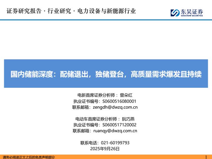 【22354E】国内储能深度配储退出独储登台高质量需求爆发且持续 14小时前 9月 1 预览结束,本文件为PDF文档,一共48页,请购买后,下载查看 资源下载下载价格59 H币VIP免费升级VIP立即购买下载或充值问题请将订单号发送到:2907878669@qq.com ,我们会在24小时内为您处理 能源化工