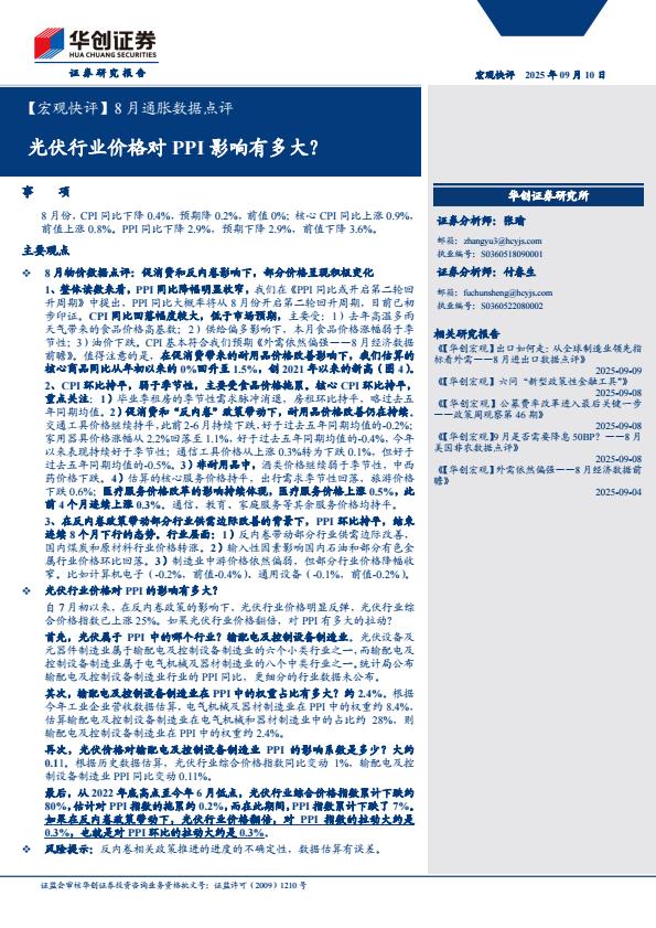 【21072E】【华创证券】【宏观快评】8月通胀数据点评:光伏行业价格对PPI影响有多大 2天前 9月 3 预览结束,本文件为PDF文档,一共13页,请购买后,下载查看 资源下载下载价格59 H币VIP免费升级VIP立即购买下载或充值问题请将订单号发送到:2907878669@qq.com ,我们会在24小时内为您处理 能源化工