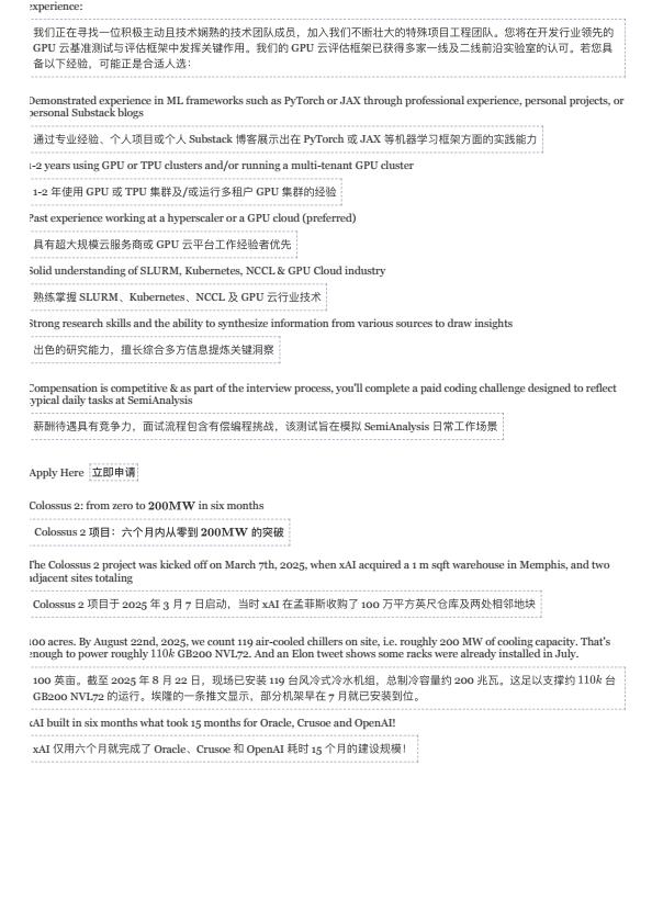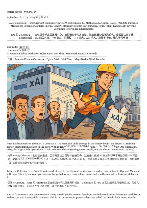 【22562E】【SemiAnalysis】xAI 巨像 2 号——全球首个吉瓦级数据中心,独特强化学习方法论及融资计划——半导体分析 16小时前 9月 1 预览结束,本文件为PDF文档,一共23页,请购买后,下载查看 资源下载下载价格59 H币VIP免费升级VIP立即购买下载或充值问题请将订单号发送到:2907878669@qq.com ,我们会在24小时内为您处理 科技电子