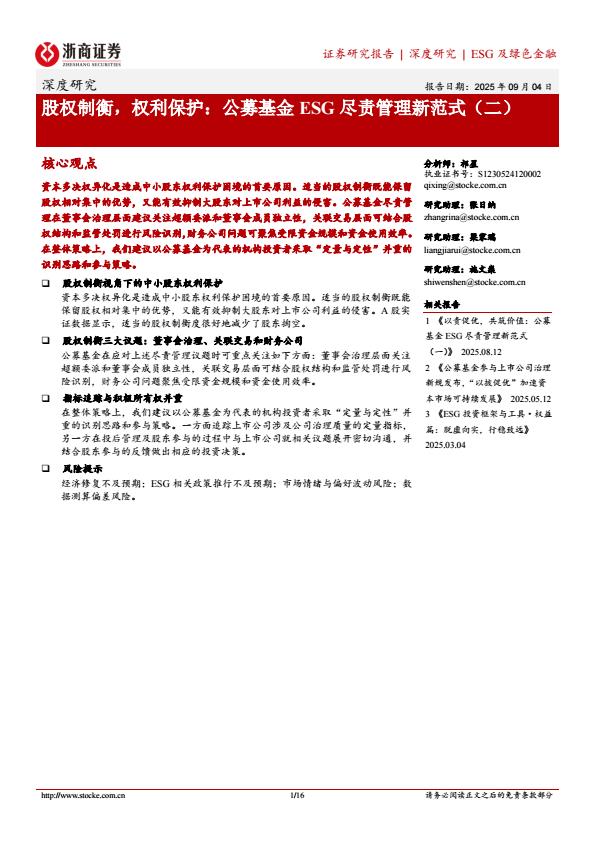 【21515E】【浙商证券】股权制衡,权利保护:公募基金ESG尽责管理新范式(二) 1天前 9月 1 预览结束,本文件为PDF文档,一共16页,请购买后,下载查看 资源下载下载价格59 H币VIP免费升级VIP立即购买下载或充值问题请将订单号发送到:2907878669@qq.com ,我们会在24小时内为您处理 金融分析