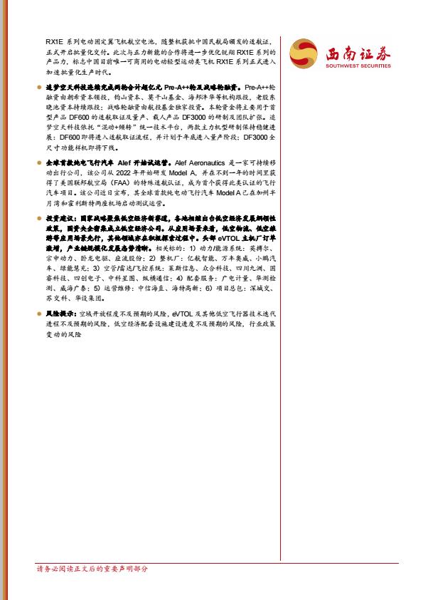 【21144E】【西南证券】低空经济行业双周报:合肥18.6亿低空经济专项债落地,沃兰特再获120架eVTOL订单 21小时前 9月 1 预览结束,本文件为PDF文档,一共13页,请购买后,下载查看 资源下载下载价格59 H币VIP免费升级VIP立即购买下载或充值问题请将订单号发送到:2907878669@qq.com ,我们会在24小时内为您处理 航空航天