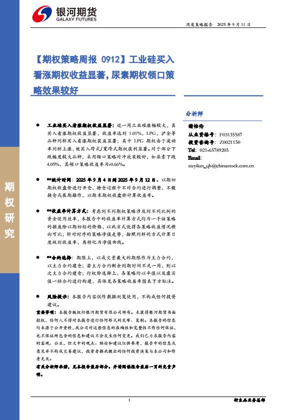 【22563E】【银河期货】【期权策略周报】工业硅买入看涨期权收益显著,尿素期权领口策略效果较好 2天前 9月 2 预览结束,本文件为PDF文档,一共18页,请购买后,下载查看 资源下载下载价格59 H币VIP免费升级VIP立即购买下载或充值问题请将订单号发送到:2907878669@qq.com ,我们会在24小时内为您处理 工业机械