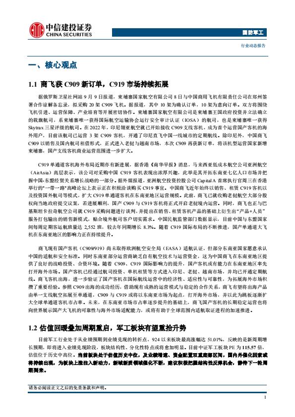 【21275E】【中信建投】国防军工行业:商飞获C909新订单,C919市场持续拓展 21小时前 9月 1 预览结束,本文件为PDF文档,一共22页,请购买后,下载查看 资源下载下载价格59 H币VIP免费升级VIP立即购买下载或充值问题请将订单号发送到:2907878669@qq.com ,我们会在24小时内为您处理 航空航天