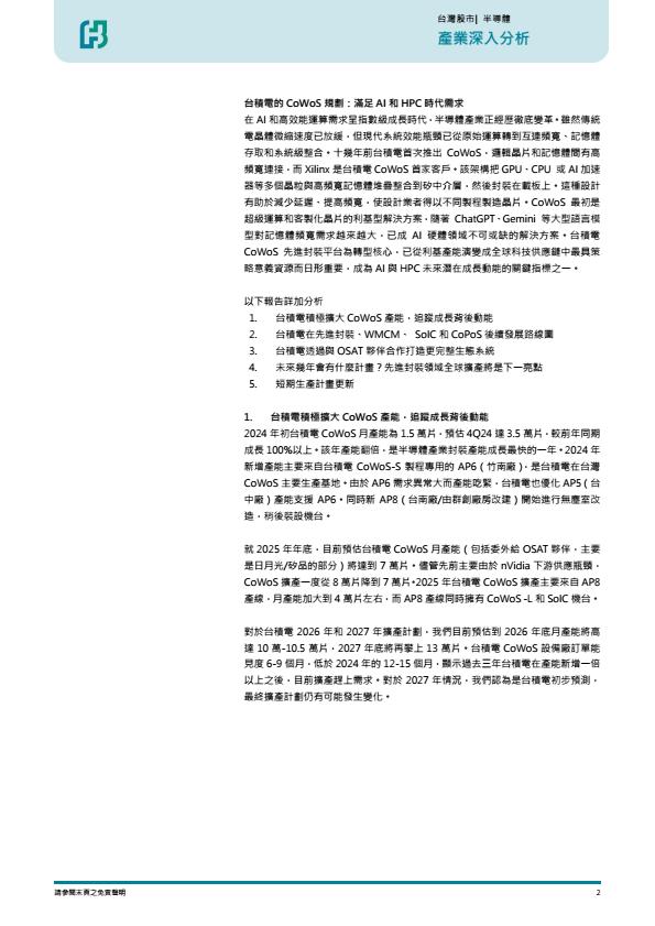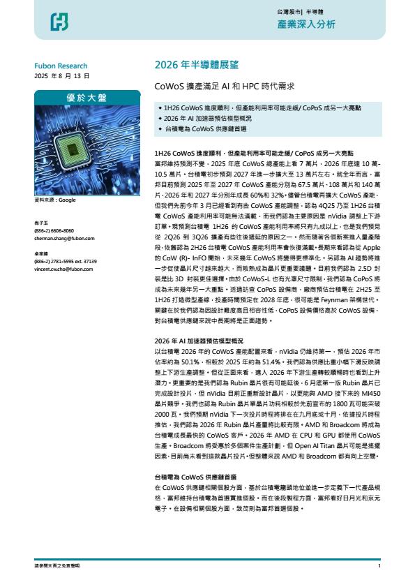 【22581E】2026年半导体展望 CoWoS 扩产满足 AI 和 HPC 时代需求 2天前 9月 3 预览结束,本文件为PDF文档,一共27页,请购买后,下载查看 资源下载下载价格59 H币VIP免费升级VIP立即购买下载或充值问题请将订单号发送到:2907878669@qq.com ,我们会在24小时内为您处理 科技电子