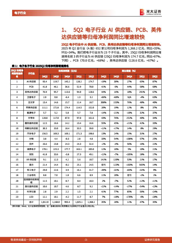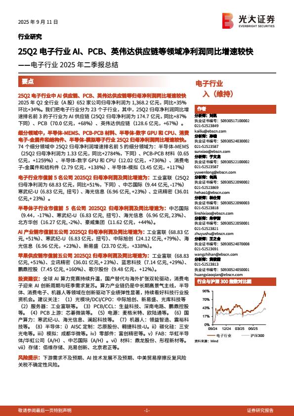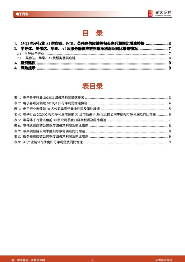 【22621E】电子行业2025年二季报总结:25Q2电子行业AI、PCB、英伟达供应链等领域净利润同比增速较快 2天前 9月 2 预览结束,本文件为PDF文档,一共11页,请购买后,下载查看 资源下载下载价格59 H币VIP免费升级VIP立即购买下载或充值问题请将订单号发送到:2907878669@qq.com ,我们会在24小时内为您处理 科技电子