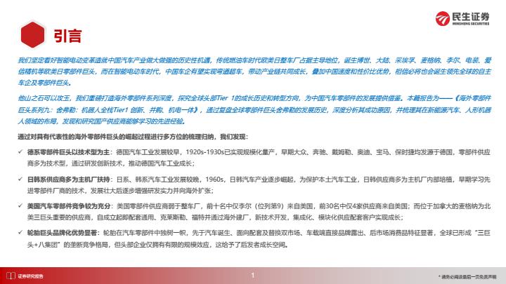 【21188E】【民生证券】汽车行业海外零部件巨头系列九:舍弗勒,机器人全栈Tier1 创新、并购、机电一体 2天前 9月 2 预览结束,本文件为PDF文档,一共122页,请购买后,下载查看 资源下载下载价格59 H币VIP免费升级VIP立即购买下载或充值问题请将订单号发送到:2907878669@qq.com ,我们会在24小时内为您处理 汽车物流