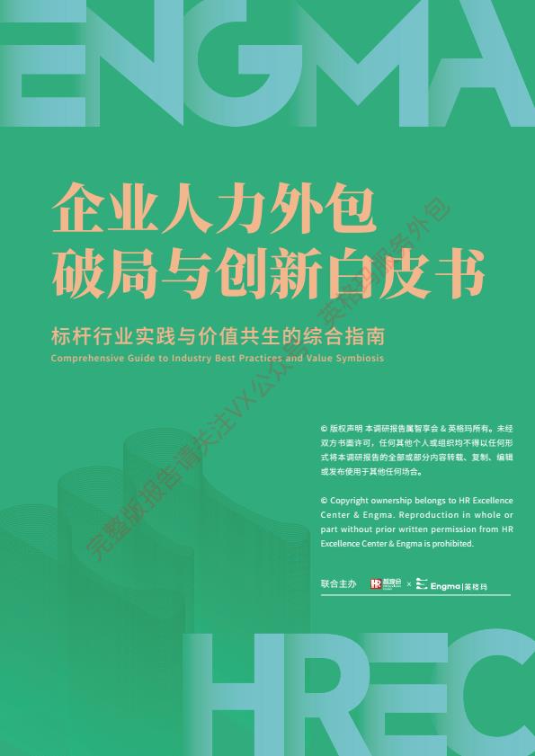 【22316E】【英格玛集团】企业人力外包破局与创新白皮书 2天前 9月 2 预览结束,本文件为PDF文档,一共71页,请购买后,下载查看 资源下载下载价格59 H币VIP免费升级VIP立即购买下载或充值问题请将订单号发送到:2907878669@qq.com ,我们会在24小时内为您处理 管理人事