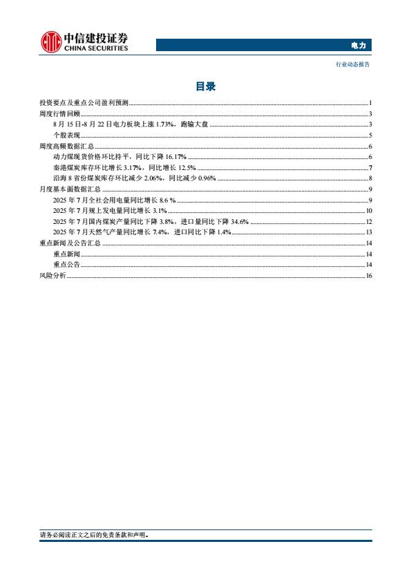 【21101E】【中信建投】电力行业:高温天气拉动电力需求,7月用电量同比增长8.6% 21小时前 9月 1 预览结束,本文件为PDF文档,一共20页,请购买后,下载查看 资源下载下载价格59 H币VIP免费升级VIP立即购买下载或充值问题请将订单号发送到:2907878669@qq.com ,我们会在24小时内为您处理 能源化工