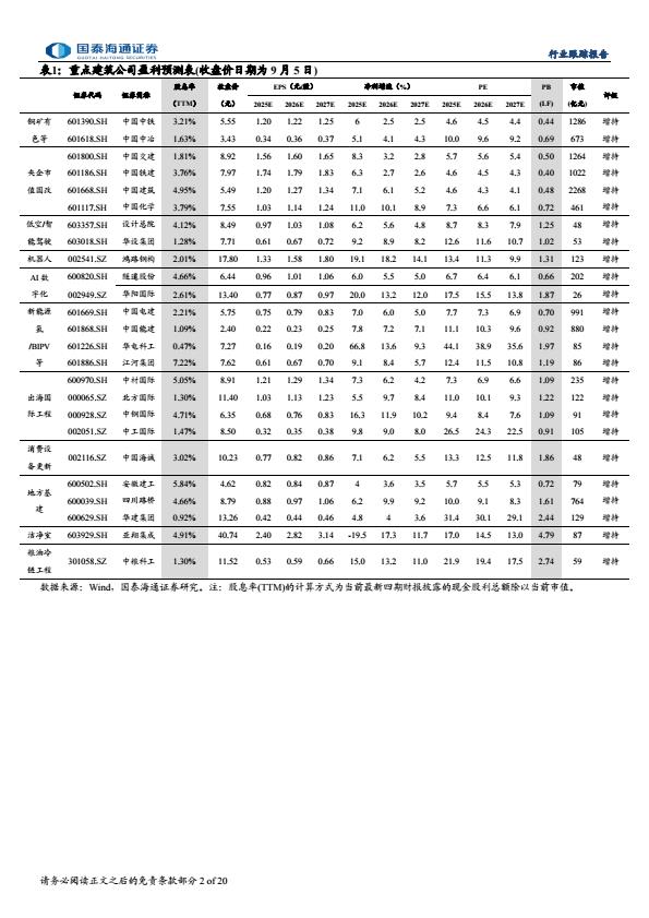 【21298E】【国泰海通证券】建筑工程行业跟踪报告:推动城市高质量发展,支持民间资本参与基建投资 21小时前 9月 1 预览结束,本文件为PDF文档,一共20页,请购买后,下载查看 资源下载下载价格59 H币VIP免费升级VIP立即购买下载或充值问题请将订单号发送到:2907878669@qq.com ,我们会在24小时内为您处理 交通基建