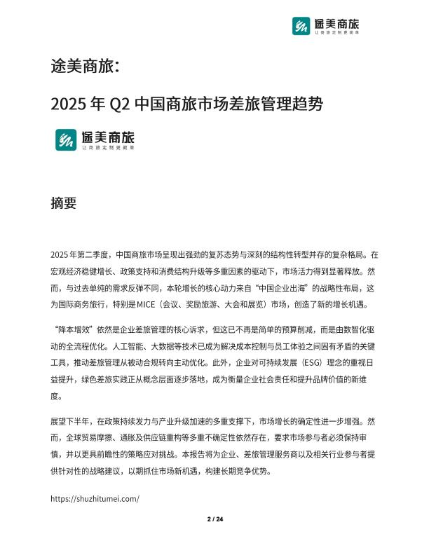 【22423E】【途美商旅】2025年Q2商旅市场差旅管理趋势报告 3天前 9月 3 预览结束,本文件为PDF文档,一共24页,请购买后,下载查看 资源下载下载价格59 H币VIP免费升级VIP立即购买下载或充值问题请将订单号发送到:2907878669@qq.com ,我们会在24小时内为您处理 管理人事