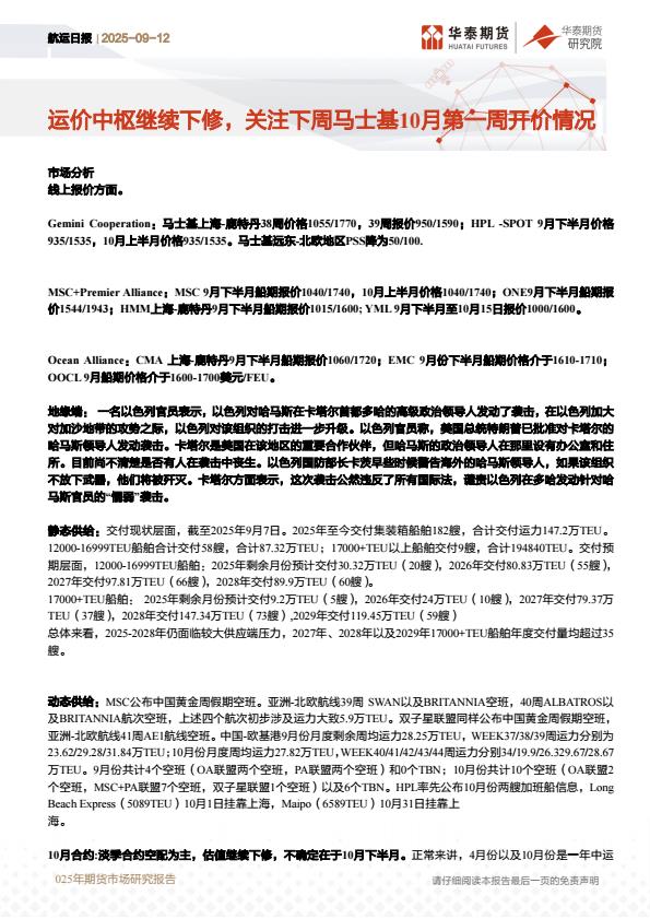 【22344E】【华泰期货】航运日报:运价中枢继续下修,关注下周马士基10月第一周开价情况 14小时前 9月 1 预览结束,本文件为PDF文档,一共14页,请购买后,下载查看 资源下载下载价格59 H币VIP免费升级VIP立即购买下载或充值问题请将订单号发送到:2907878669@qq.com ,我们会在24小时内为您处理 金融分析