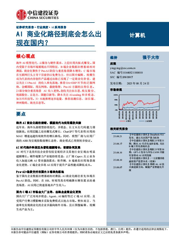 【21333E】【中信建投】计算机行业AI系列报告:AI商业化路径到底会怎么出现在国内 14小时前 9月 1 预览结束,本文件为PDF文档,一共35页,请购买后,下载查看 资源下载下载价格59 H币VIP免费升级VIP立即购买下载或充值问题请将订单号发送到:2907878669@qq.com ,我们会在24小时内为您处理 科技电子