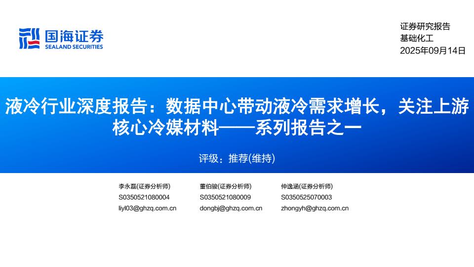 【21374E】【国海证券】液冷行业深度报告:系列报告之一,数据中心带动液冷需求增长,关注上游核心冷媒材料 14小时前 9月 1 预览结束,本文件为PDF文档,一共45页,请购买后,下载查看 资源下载下载价格59 H币VIP免费升级VIP立即购买下载或充值问题请将订单号发送到:2907878669@qq.com ,我们会在24小时内为您处理 科技电子