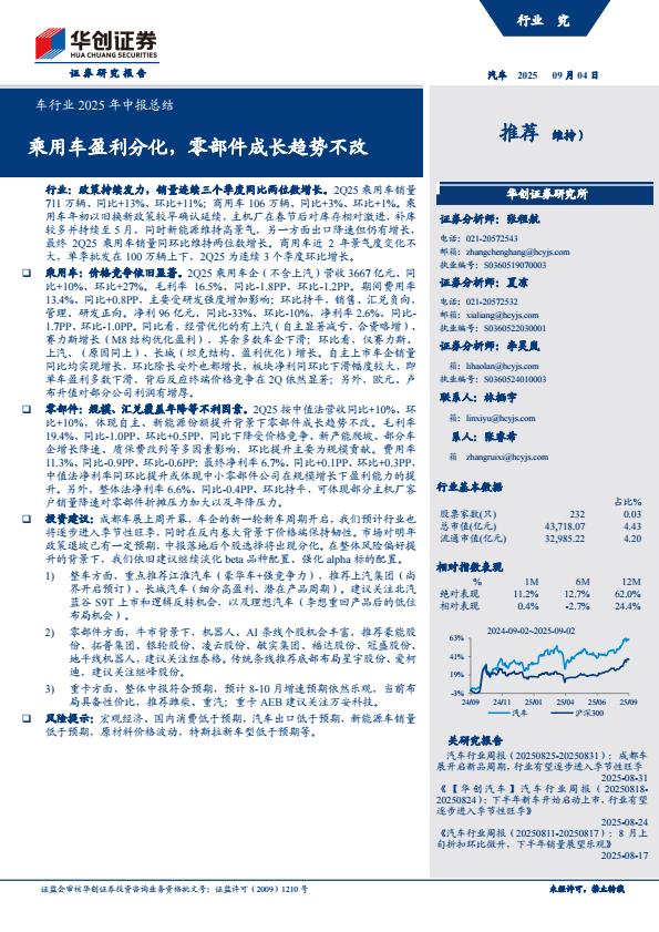 【22383E】汽车行业2025年中报总结:乘用车盈利分化零部件成长趋势不改 2天前 9月 2 预览结束,本文件为PDF文档,一共32页,请购买后,下载查看 资源下载下载价格59 H币VIP免费升级VIP立即购买下载或充值问题请将订单号发送到:2907878669@qq.com ,我们会在24小时内为您处理 汽车物流