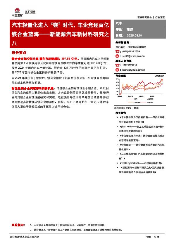 【21399E】【五矿证券】新能源汽车新材料研究之八:汽车轻量化进入“镁”时代,车企竞逐百亿镁合金蓝海 14小时前 9月 1 预览结束,本文件为PDF文档,一共15页,请购买后,下载查看 资源下载下载价格59 H币VIP免费升级VIP立即购买下载或充值问题请将订单号发送到:2907878669@qq.com ,我们会在24小时内为您处理 汽车物流