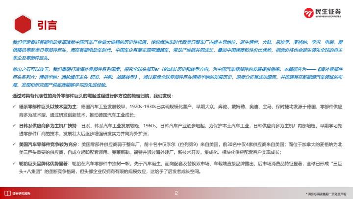 【21406E】【民生证券】海外零部件巨头系列六:博格华纳:涡轮增压龙头 研发并购、战略转型 21小时前 9月 1 预览结束,本文件为PDF文档,一共91页,请购买后,下载查看 资源下载下载价格59 H币VIP免费升级VIP立即购买下载或充值问题请将订单号发送到:2907878669@qq.com ,我们会在24小时内为您处理 汽车物流