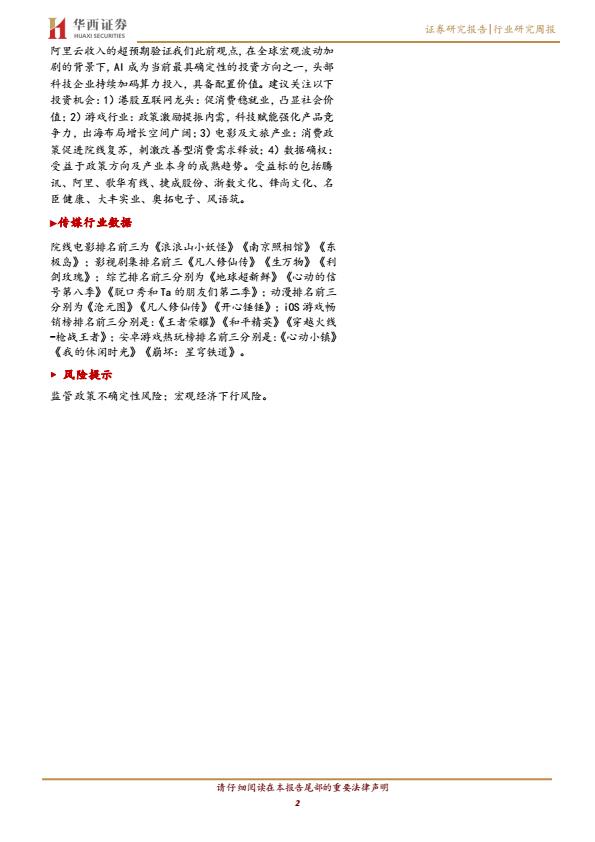 【21204E】【华西证券】传媒行业周报系列2025年第34周:阿里云业务增速超预期,八月游戏版号数量创新高 20小时前 9月 1 预览结束,本文件为PDF文档,一共14页,请购买后,下载查看 资源下载下载价格59 H币VIP免费升级VIP立即购买下载或充值问题请将订单号发送到:2907878669@qq.com ,我们会在24小时内为您处理 娱乐传媒