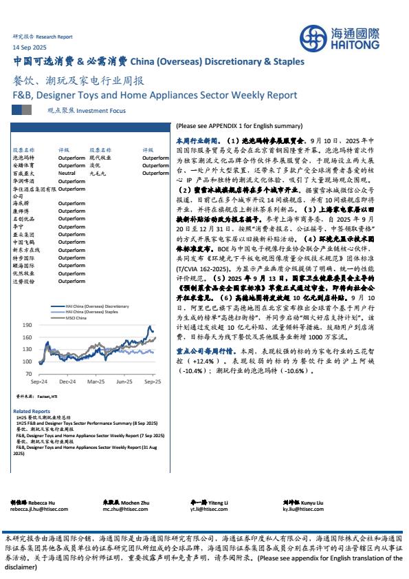 【22403E】【海通国际】中国可选消费%26必需消费:餐饮、潮玩及家电行业周报 3天前 9月 2 预览结束,本文件为PDF文档,一共10页,请购买后,下载查看 资源下载下载价格59 H币VIP免费升级VIP立即购买下载或充值问题请将订单号发送到:2907878669@qq.com ,我们会在24小时内为您处理 家居家电