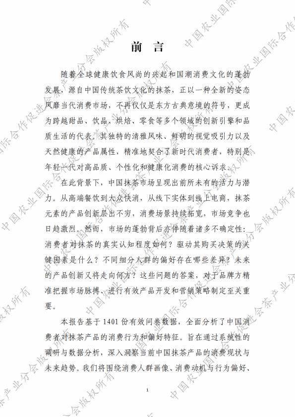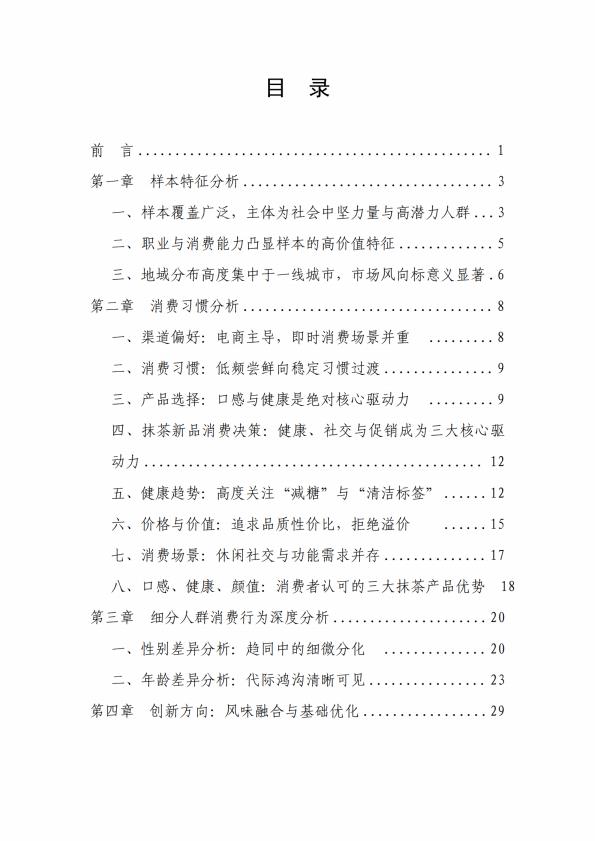【22428E】【中农促茶产业分会】抹茶产品消费行为调查报告(2025) 2天前 9月 3 预览结束,本文件为PDF文档,一共34页,请购买后,下载查看 资源下载下载价格59 H币VIP免费升级VIP立即购买下载或充值问题请将订单号发送到:2907878669@qq.com ,我们会在24小时内为您处理 食品饮料